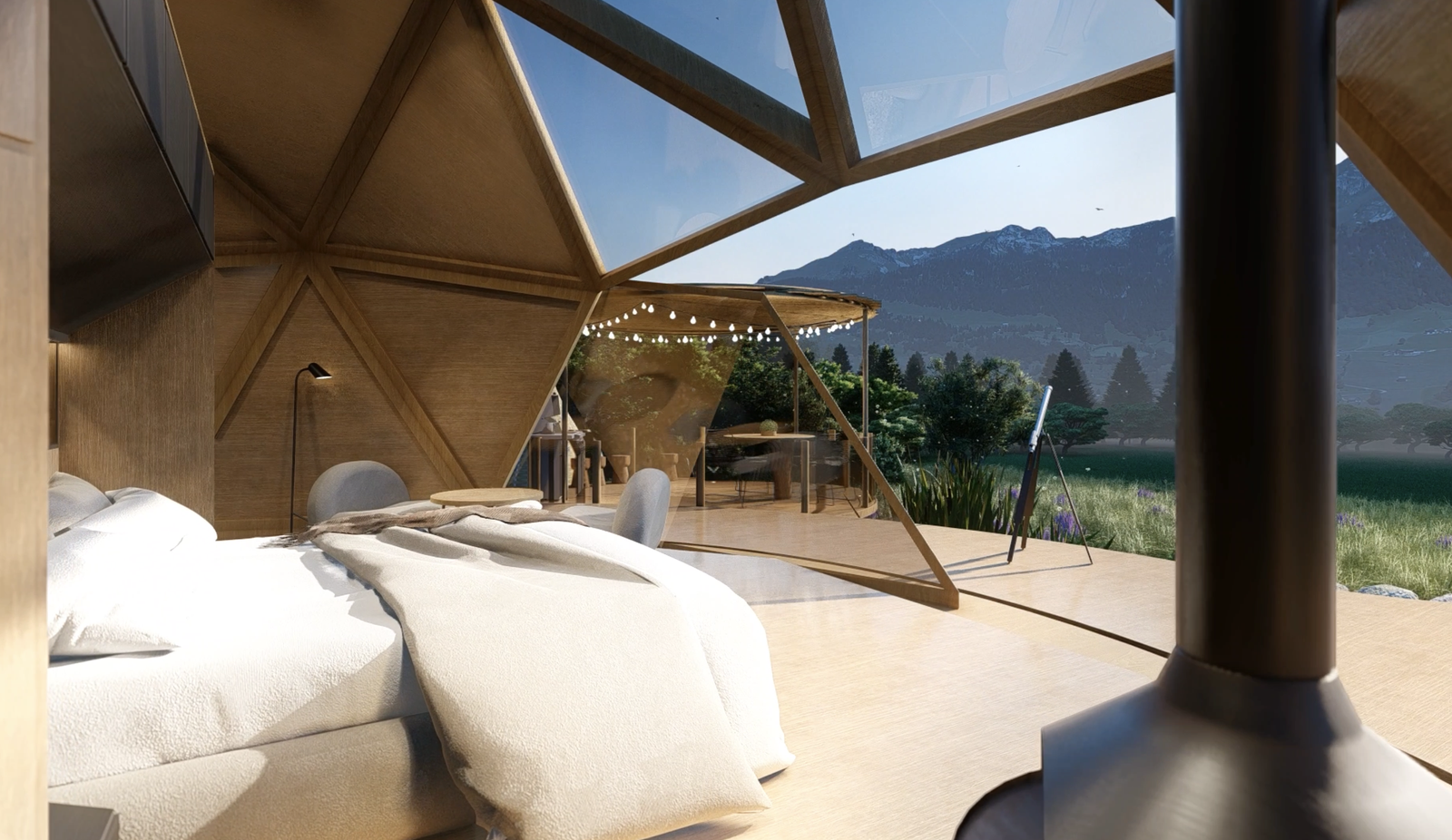 La incorporación del altillo solo es posible en domos con esta altura mínima, permitiendo aumentar la capacidad de alojamiento sin sacrificar espacio ni estética, una característica especialmente valiosa en proyectos de hospitality premium donde cada metro cuadrado debe trabajar a favor de la experiencia del huésped y de la rentabilidad del operador.