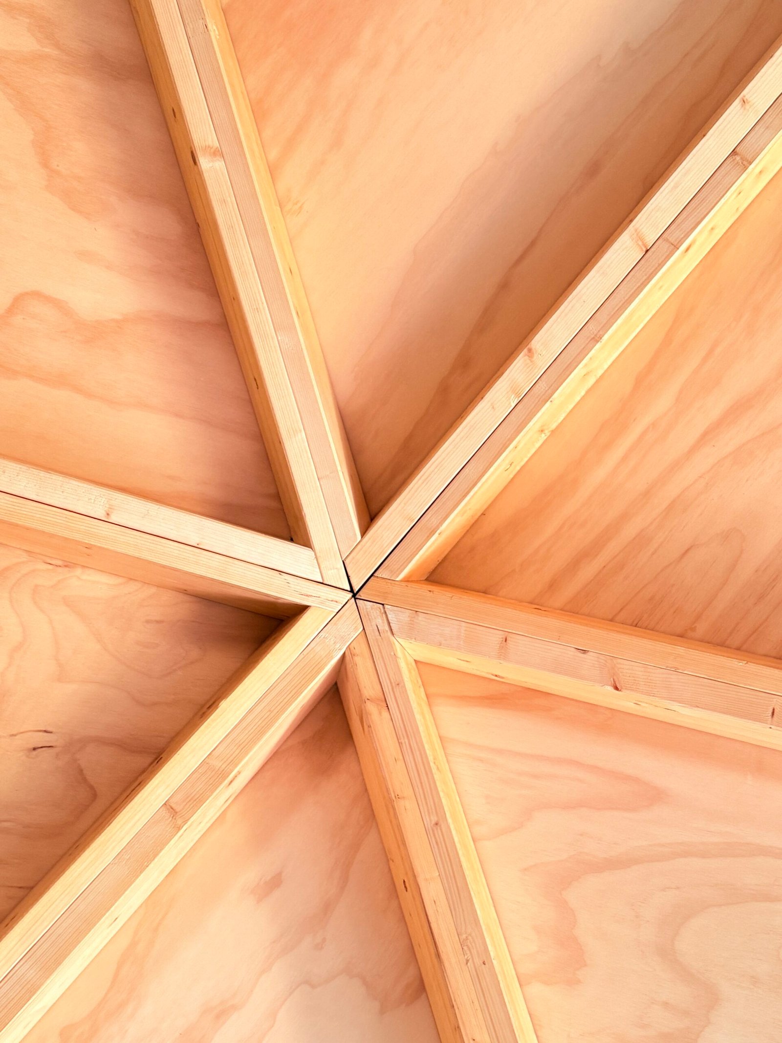 Estructura geodésica autoportante en madera maciza pre-mecanizada